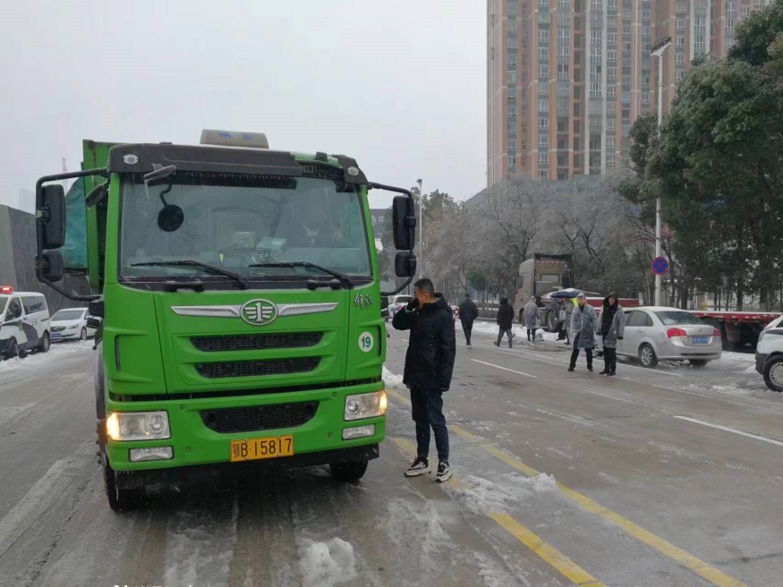▲城發(fā)·南岸春風(fēng)項目由項目經(jīng)理帶隊,發(fā)動項目班組及工人共5人,使用鐵鍬、掃把、配合鏟車為西塞山區(qū)朱家嘴路段鏟雪除冰,有效保障了行人和行車安全,為項目物資供應(yīng)和市民出行提供安全保障。